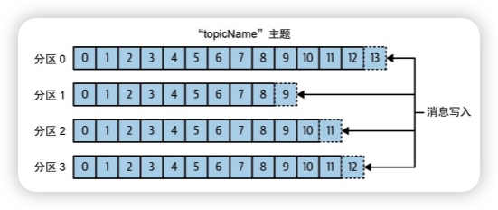 上图中的主题有 4 个分区,消息被追加写入每个分区的尾部。
